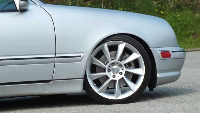 Karosserie: AMG-Stoßfänger vo/hi, Radhäuser rundum leicht gezogen, Kanten umgelegt, Dach und Haube schwarz lackiert, Dachreling entfernt, Chromleisten, US-Sidemarkers, Spiegelblinker und Rückleuchten getönt