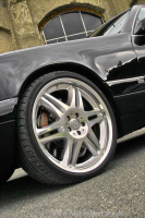 Die Movit-Rennbremsanlage wurde von mir eingebaut, berichtet der in der Netz-Comunity als Bernard 6.9 bekannte Mercedes-Fan. Außerdem spendierte ich dem W140 noch einen 3-teiligen Brabus-Radsatz. Dieser war von Brabus eigentlich für den Maybach aufgelegt worden. Doch meinem Mercedes stehen sie ebenso gut. Die Brabus-Felge (Monoblock VI) besticht nicht nur durch ihre stilistische Anmutung, sondern auch mit schierer Größe. Bringen es die Räder doch auf die beachtlichen Maße von 9 x 21 (vorne und 10.5 x 21 Zoll (hinten). Bei den Reifen fiel die Wahl auf Yokohama Advan Sport 255/30-21 (vorne) und 295/25-21 (hinten).