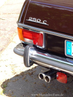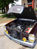 Der neue betagte Mercedes Motor, welcher nach einer kleineren Revision ohne größere Komplikationen bald wie Flottchen lief und seine Abgase über eine Doppelrohr-Abgasanlage des Mercedes-Modells 280/280C verdampft, wurde übrigens im Jahr 2003 auf Autogas umgestellt und kann jetzt bivalent mit Autogas und Benzin betrieben werden. Mercedes Oldtimer fahren mit Flüssiggas - warum eigentlich nicht? Ist das ein Stilbruch? Vermutlich gibt es Oldtimerfans, die bei Gasgeruch die Nase rümpfen. Dabei tut LPG den Oldies gut. weil es erstens umweltfreundlicher verbrennt und zweitens dank der hohen Oktanzahl für einen besseren Motorlauf sorgt. Die Erkenntnis ist übrigens nicht neu: In den 60er und 70er Jahren war der bivalente Betrieb von Autos in Ländern wie Frankreich, Italien und Spanien schon an der Tagesordnung.