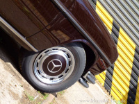 Den Kontakt zur Fahrbahn hält der Mercedes Strichacht heute mit Vorderachsfedern vom W107 sowie Monroe Loadlevelern Stoßdämpfern (Niveau) an der Hinterachse. Ins Rollen kommt das Coupé mit Lemmerz, Kronprinz Stahlfelgen in 6 x 14 ET30, auf denen 195/70er Falken-Pneus aufgezogen sind.