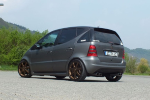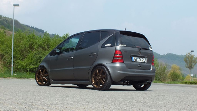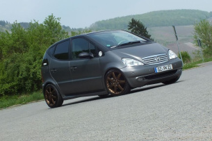 Derart gestylt, kommt die A-Klasse auffallend anders daher. Auf den stimmigen Mix kommt es eben an. In diesem Trimm wird man gewiss keinen zweiten Mercedes W168 auf der Straße sehen, pocht Philipp auf stilistische Individualität und ergänzt: Trotzdem finde ich das Outfit noch relativ dezent.