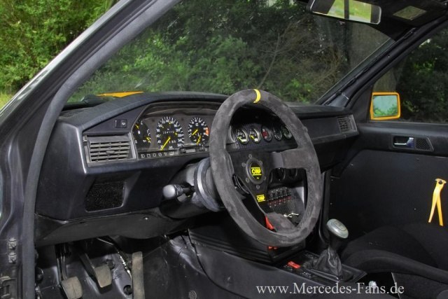 Dem kompromisslosen Sport-Trimm musste auch das ursprünglich verbaute Schiebe-Dach weichen. Mattschwarze 18-zöllige Ronal-Räder, die Thomas Kiefer mit 225/35er Bridgestone-Pneus bestückt, vervollständigen den kraftvollen Look im Zeichen der ruhmvollen Motorsport-Tradition der erfolgreichen Mercedes-Baureihe W201.