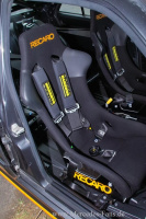 Innenraum: 35er OMP-Lenkrad, Recaro-Vollschalen, Innenraum lackiert, Sechpunkt-Schrothgurte, Wiechers-Überollbügel, Carbon-Türverkleidungen, zusätzliche Anzeigen für Öldruck (Motor und Differential), Benzindruck, Voltmeter, Lambda-Control, Handbremse ersetzt durch Absperrventil, Bremsbegrenzungsventil