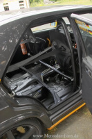 In der spartanisch möblierten Kabine kann Thomas Kiefer in authentischem Motorsport-Flair schwelgen. Dafür sorgen OMP-Lenkrad, Recaro-Vollschalen, Wiechers-Überollbügel, Carbon-Türverkleidungen und manch anderes Accessoire mehr. Das Instrumentarium wurde derweil um zusätzliche Anzeigen (Öldruck für Motor und Differential), Benzindruck und Voltmeter) erweitert. Im Gegenzug musste sich der Mercedes von so manchem Ballast wie Rückbank, Verkleidungen und Dämmstoffen trennen.