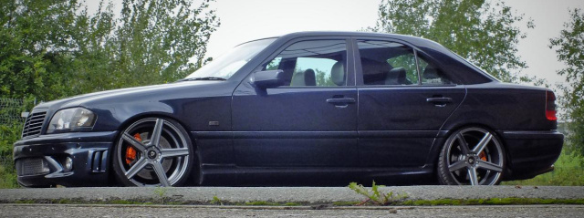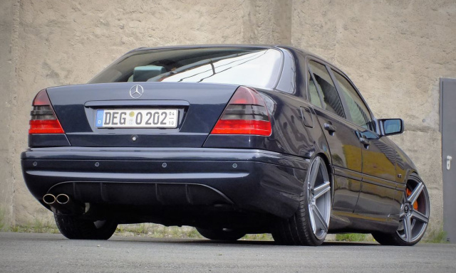Ursprünglich als ein - es eher etwas gemütlich angehender - Mercedes C180 vom Band gelaufen, mauserte sich das C-Klasse-Modell (Baureihe W202) unter der Regie von Mercedes-Fan Florian Wimmer zum 265 PS leistenden Kompressor-Cruiser. Und auch in optischen Belangen hat die Limousine kräftig zulegen können.