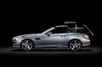 Die zeitlos klassische Form der Seitenansicht mit den klassischen Roadster-Proportionen verkörpert höchste Ästhetik und ist ein optisches Versprechen für Sportlichkeit und Fahrspaß. Feine Details und Zitate zeigen die Sorgfalt, mit der die Mercedes-Benz Designer gearbeitet haben. Beispielsweise verbirgt eine Hohlkehle die Kofferraumfuge, sodass sie nicht wie sonst bei ähnlichen Dach-konstruktionen die Seitenlinie stören kann. Die Lüftungsgitter in den Vorder-kotflügeln mit verchromter Finne erinnern an die berühmten Mercedes-Benz Roadster der 1950er Jahre. Im neuen SLK bilden sie formvollendet den Ausgangspunkt für eine Charakterlinie, die sich bis zum muskulösen Heckkotflügel zieht und auf diese Weise Licht und Schatten nutzt, um den Seitenflächen Stil und zeitlose Ästethik zu verleihen. Analog dazu mündet der obere Abschluss der zum ersten Mal in reiner LED-Technik ausgeführten, breiten Heckleuchten ebenfalls optisch in die Charakterlinie.