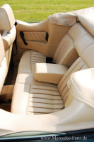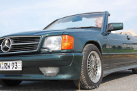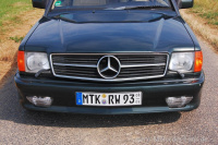 Ein Karosserie-Kit aus Front- und Heckstoßfänger, Schwellerleisten sowie der markanten SEC-Haube sollen dem Cabriolet aus dem Hause AKH Caro zu stilistischer Eigenständigkeit verhelfen. Herausgekommen ist ein interessantes Facelift, das beim Publikum allerdings ein geteiltes Echo findet. Vor allem W126 SEC-Haube, die sich mit ihrem breiten Grill sogar vor die Scheinwerfer drängelt, empfinden etliche Betrachter mindestens als gewöhnungsbedürftig.