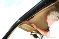 Als hübsches Käppchen haben die Norddeutschen ihrer Schöpfung ein elektrohydraulisches Verdeck mitgegeben. Selbiges überzeugt dank dickem Futter mit guter Dämmung und akzeptablen Windgeräuschen selbst bei flotter Fahrt. Außerdem lässt es sich bei Schrittgeschwindigkeit wie von Zauberhand ein- und ausfahren. Ein Gadget, das die damaligen Zeitgenossen durchaus beeindruckt haben dürfte. Die Friemelarbeit, die der Cabriolet-Pilot zur Ver- und Entriegelung des Verdecks an der A-Säule freilich auch zu leisten hatte, blieb der Öffentlichkeit indes verborgen.