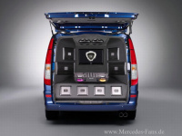 In dem Unterhaltungselektronik-Spezialisten Pioneer fand Mercedes-Benz UK den richtigen Partner, um den Mercedes Vito musikalisch und lautmalerisch in Szene zu setzen. Knapp 30.000 Euro ist das Musik-Equipment wert, dass in dem Mercedes-Vito steckt. Vier Batterien sind nötig, damit die Versorgungsspannung beim Betreiben der acht Endstufen und beim Befeuern des mächtigen Aufgebots an Schallwandlern mit einer Gesamtleistung von 30.500 Watt während der Show nicht in die Knie geht.