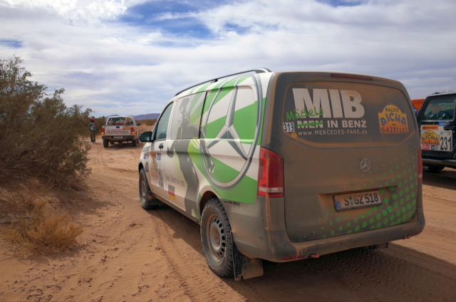 Das der fast serienmäßige Vito die Strapazen einer solchen Rallye klaglos wegstecken kann, hat die 2015er Ausgabe der Aicha des Gazelles gezeigt. Damals hatten die Mechaniker bis auf ein paar kleinere Unfall-Schäden keinerlei Reparaturen oder Probleme an den Fahrzeugen! Respekt!