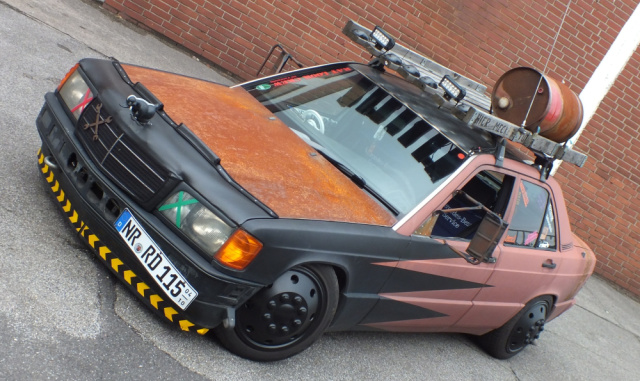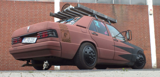 Schönheit liegt bekanntlich im Auge des Betrachters. Die wohl überwiegende Mehrzahl der Auto-Fans steht auf makellos glänzende Lackoberflächen und blitzblanken Chrom – und dann gibt es Schrauber wie Stefan Rüddel, denen das Fahrzeuge nicht gammelig genug wirken kann. Wo der Zahn der Zeit sich noch nicht in gewünscht heftiger Weise ins Blech des Mercedes 190E der Baureihe W201 verbissen hatte, forcierte er mit gezielten Maßnahmen und Modifikationen das Bild der Verwahrlosung. Schrott or not? Darüber darf man sicherlich diskutieren! Aber ein Eyecatcher ist Stefans Mercedes ohne jeden Zweifel.