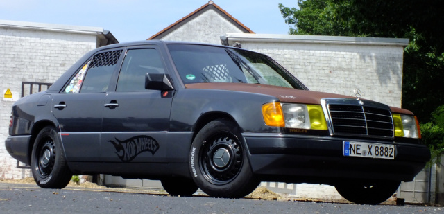 „Ein wenig “runtergekommen“ - soviel Wortspiel muss bei diesem Ratten-Projekt gestattet sein – wirkt der Mercedes 200E nicht zuletzt aufgrund der Absenkung via nachgerüsteter Tieferlegungsfedern.