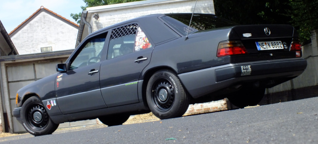 Manch Mercedes-Fan wird beim Anblick von Holgers Limousine der Baureihe W124 möglicherweise etwas irritiert den Kopf schütteln und sich fragen, ob ein Mercedes diese Behandlung nach bald 25 Jahren vorbildlicher Pflichterfüllung verdient hat.