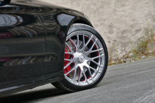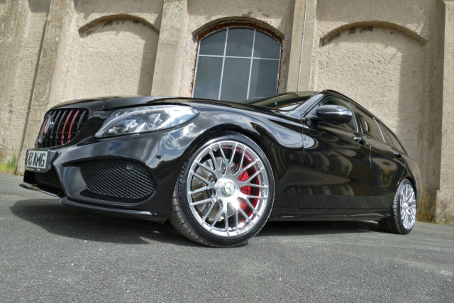 Räder: C63-AMG Schmiederad im Kreuzspeichendesign, 8,5 x 19 ET38 vorn und 9,5 x 19 ET 56 hinten; nachträglich hochglanzverdichtet, klarlackgepulvert, poliert und ceramicversiegelt
