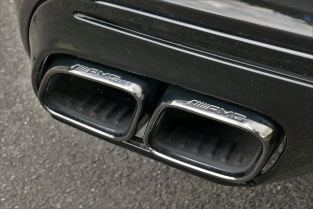 Was ist am Exterieur, an dem übrigens das Typenschild auf dem Heckdeckel und die Biturbo-Embleme auf den Kotflügeln entfernt wurden, noch anders? Alle serienmäßig silbern lackierten Parts glänzen jetzt schwarz. Zudem erhielten sämtliche Scheiben zusätzlich zu ihrer Tönung ab Werk eine Verdunklungsdosis extra mittels Scheibenfolie. Am Heck zeigt sich der nach wie vor mit 367-Serien-PS abfahrende C43 Umbau mithilfe von Original C63-Heckdiffusor und Original-C63-Auspuffblenden von der stärkeren Seite.