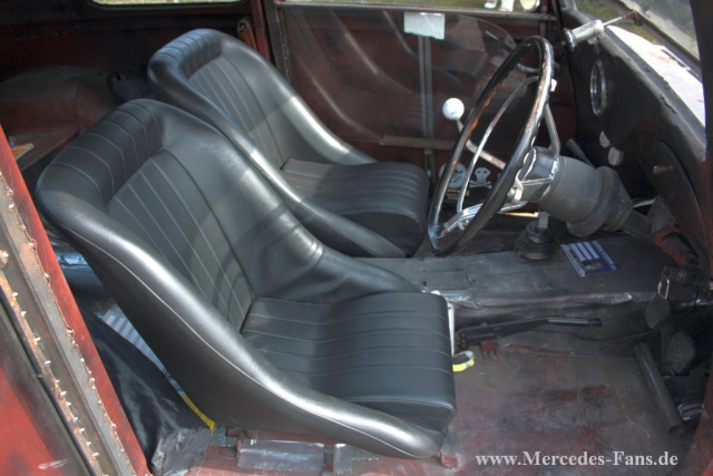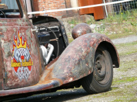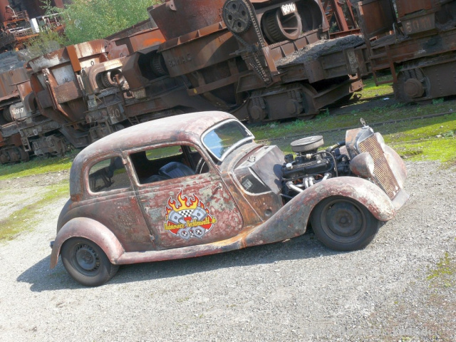Ich wollte einen Rod haben, den es so noch nicht gab. Er sollte einen möglichst großen V8 Motor haben, die Technik sollte einfach und die Elektrik spartanisch sein, er sollte sehr laut sein und richtig grob zur Sache gehen, erklärt Ingo. Ich wollte keine Glanzkarre! Letztendlich ist er genauso geworden, wie ich mir das vorgestellt habe. Und dennoch oder gerade deshalb war der 170 V ein absoluter Star bei den Schönen Sternen in Hattigen letzten September. Und ausgerechnet ein älterer Mercedes-Fan mit einem bordeauxroten 170 V fand Ingos Mercedes-Rod "doll"!
