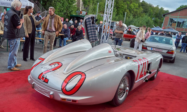 Übrigens: Die Typenbezeichnung lässt zwar vermuten, dass der 300 SLR in verwandschaftlicher Beziehung zum 300 SL Rennwagen (W 194) oder dem 300 SL Strassensportwagen (W 198) steht - doch das ist nicht der Fall. Er basiert zu einem Teil auf der Technik des erfolgreichen Grand-Prix-Rennwagens, ist aber als Straßenrennwagen karossiert. Seine interne Bezeichnung W 196 S verweist denn auch auf die nahe Verwandtschaft zum zeitgenössischen Grand-Prix-Silberpfeil.