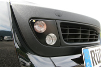 Karosserie: Türgriffe, Spiegeldreiecke, Spiegelkappen, Heckklappenscharniere in Carbon-Optik, Aluminiumgrill schwarz eloxiert, Steinschlagschutz der hinteren Radläufe in Carbon-Optik, Gehäuse der Rückleuchten schwarz lackiert