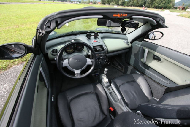 Tja, und nach dem geräumigen Opel folgte der Wechsel zum vergleichsweise winzigen Smart Roadster. Das automobile Down-Sizing war bewusst gewählt. Nach einer eher behäbigen Straßensänfte wollten meine Frau und ich Sportwagen-Feeling pur. Und dafür ist der Smart Roadster genau die richtige Wahl, erzählt Hendrik.