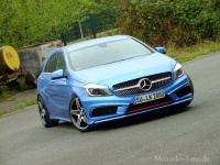 Auch die Fahrzeugtechnik wurde von AMG besonders abgestimmt. Im Zuge dessen präsentieren sich ESP, das Doppelkupplungsgetriebe 7G-DCT und die Sound-Akustik überarbeitet. Darüber hinaus bringt Michael ein H&R-Gewinde zum Einsatz, welches die Bodenfreiheit um 60/50 mm reduziert. In Verbindung mit der Spurverbreiterung um 20 mm vorne und 24 mm hinten offeriert der athletische W176 ein knackig-straffes Handling.