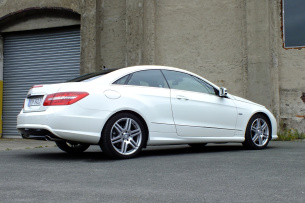 Die gute Figur ist dem Mercedes also gleichsam in die Wiege gelegt. Dank des Sportpakets wirkt das Coupé optisch noch ansprechender und agiler. Außerdem sind dem schwungvoll linierten C207 gelochte Bremsscheiben und 18-zöllige Leichtmetallfelgen im rassigen Doppelspeichen-Design mitgegeben.