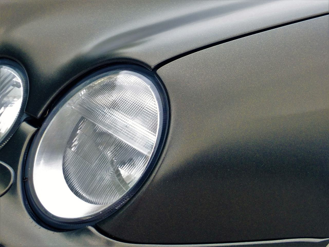 Ein Blickfang - vor allem bei schönem Wetter - ist die Karosserie. Zeigt sich die Sonne, was am Tage des Fototermins leider nicht der Fall war, dann funkelt der Stern dank einer Folierung mit Gold-Dust-Black-Satin von 3M besonders schön. Die Folierung nahm Alex übrigens im DIY-Verfahren vor: „Die Folierung des CLK 55 AMG hat einen ganzen Winter gedauert. Nach der Arbeit oder an der Wochenenden habe ich ein nach und nach die einzelnen Karosserieparts sorgfältigst bearbeitet." Zu den weiteren Veränderungen an der Karosserie gehören LED-Rückleuchten und ein schwarz lackierter Grill.