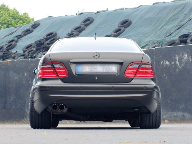 Es sind verschiedene Elemente, welche dazu beitragen, dass das Coupé in seinem Umfeld mehr Berücksichtigung findet. Eines ist die Eigenbau-Auspuffanlage, mit welcher sich der CLK 55 AMG laut und deutlich mehr Gehör auf der Straße verschafft.
