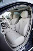 Exklusivität und Luxus, kombiniert mit betont sportlichen Gestaltungsmerkmalen das S 65 AMG Interieur fasziniert durch außergewöhnliches Ambiente, höchste Materialgüte und erlesene Qualität. Prägend hierfür ist die Polsterung in Leder Exklusiv Nappa mit Sitzgrafik im exklusiven Rauten-Design. Eine Besonderheit ist die sogenannte gesetzte Perforation im Lederpolster der AMG Sportsitze: Überall dort, wo Kontrastziernähte verlaufen, findet sich bewusst keinerlei Perforation im Nappaleder. Das Resultat ist ein außergewöhnlich sauberer Nahtverlauf und ein einzigartiger Qualitätseindruck. Zum weiteren Umfang des Exklusiv-Pakets gehören der Innenhimmel in Leder Nappa, die belederte Instrumententafel, Türmittelfelder im Rauten-Design, belederte Dachhaltegriffe, zusätzliche Holz-Zierelemente sowie weiß beleuchtete AMG Einstiegsleisten in Edelstahl. Bei der Polsterung Leder Exklusiv Nappa kann der Kunde zwischen den Farben Schwarz, Seidenbeige/Espressobraun, Nussbraun/Schwarz, Porzellan/Schwarz sowie Kristallgrau/Muschelgrau wählen.