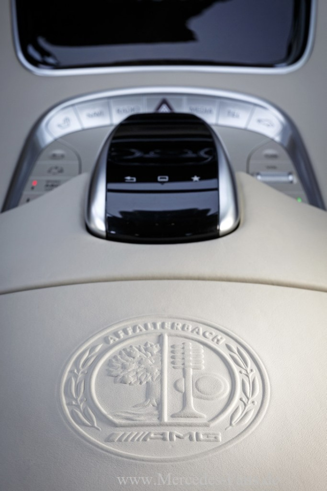 Beim S 65 AMG kommen erstmals ausschließlich AMG Leichtmetallräder in Schmiedetechnologie zum Einsatz. Diese Bauart sorgt für eine Gewichtsersparnis bei gleichzeitiger Erhöhung der Festigkeit. Daraus resultiert eine Verringerung der ungefederten Massen, was Vorteile beim Handling und beim Ansprech-verhalten der Feder-Dämpfer-Elemente bringt. Serienmäßig rollt der S 65 AMG auf AMG Leichtmetallrädern im Vielspeichen-Design, keramisch hochglanzpoliert in 8,5 x 20 vorn und 9,5 x 20 hinten mit Reifen in 255/40 R 20 bzw. 285/35 R 20. Die Vielspeichen-Leichtmetallräder dürfen als Neuinterpretation der klassischen Speichenräder aus den 1930er-Jahren gelten wie sie etwa beim legendären Mercedes Traumwagen 540 K zum Einsatz kamen. Die exklusiven Schmiederäder des S 65 AMG faszinieren durch ihr außergewöhnliches Design: Jede der 16 Speichen ist verdreht ausgeführt, dadurch laufen die Lichtkanten bis zur Mitte der Radnabe. Der Effekt: Das Rad wirkt optisch noch größer. Ein weiteres hochwertiges Detail ist die schraubbare und voll integrierte Radschrauben-abdeckung aus geschmiedetem Metall. Ihre Form erinnert an einen Zentralverschluss, eine Reminiszenz an den Motorsport. Zudem erlaubt das Design freie Blicke auf die AMG Hochleistungs-Bremsanlage.