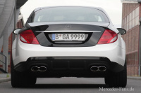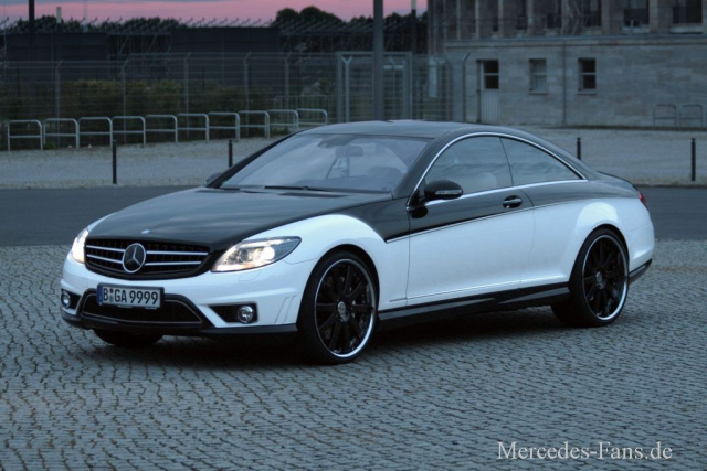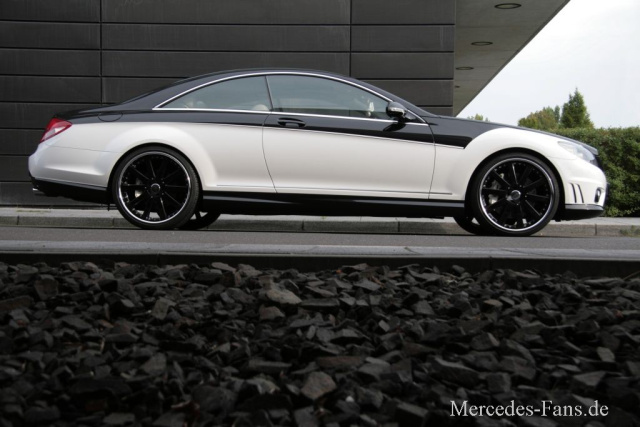 Besonders sehenswert ist der Topping-Mix aus Schwarz und Weiß. Statt im aggressiven Tuning-Outfit ahmt das Styling eher ein Retro-Finish nach, was den sportiven Luxuscharakter des Mercedes stimmig unterstreicht.