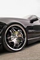 Auf den Achsen drehen imposante 20 Zöller (Hipnotic Bliss Chrom) reizvoll ihre Runden. Die Verwendung der großen Räder und der Distanzscheiben machte die bereits erwähnte Verbreiterung der Gehäuse erforderlich. Mit schmaleren Spurplatten hätte die Rad-Reifen-Kombi auch so gepasst, erläutert Ersan, aber ich wollte den Mercedes möglichst stämmig auf die Straße stellen.