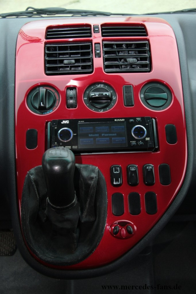 Dem Innenraum widmete man zumindest auf der Kommandobrücke ein paar Farbtupfer in Wagenfarbe, ferner ein JVC DVD-Radio mit TFT-Monitor. Für die Zukunft ist ein V280 Motorumbau geplant, welcher dann mit spezieller Abstimmung 200PS auf die Straße stemmen soll. Wir dürfen also gespannt sein.