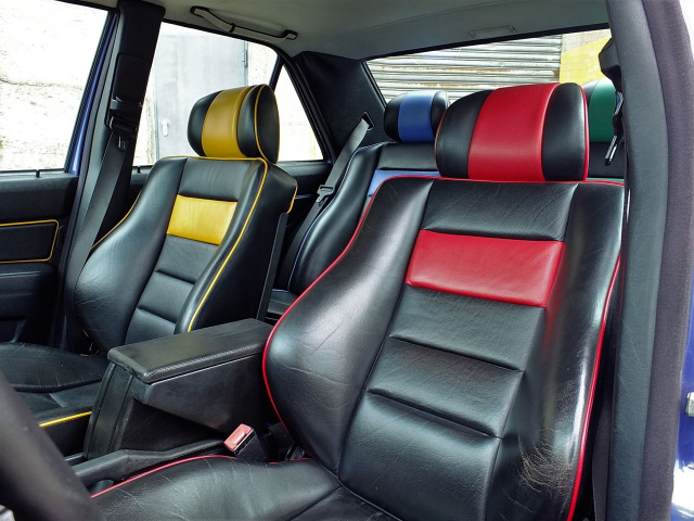 Innenraum: Original-Ausstattung „Avantgarde Azzuro“: Lederbezüge (vierfarbig akzentuiert) für Sportsitze, Sportlenkrad- und Sportschaltknauf,
