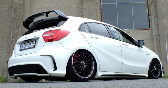 Doch ordnete er den Einbau eines Air-Force-Luftfahrwerks an, um die außergewöhnliche Ausstrahlung seines Mercedes A45 AMG auf die Spitze zu treiben – wenngleich er dafür seinen geliebten Benz tief in den Keller schickt.