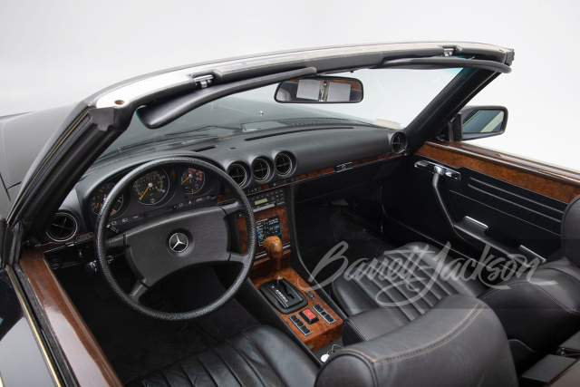Viel ist Wayne Newton mit seinem Mercedes SL 380 nicht gefahren. Der ungewöhnliche Stern hat weniger als 2.000 Meilen auf dem Tacho. Der Auktionator beschreibt den Zustand des Autos im Übrigen als „wie neu", da der Wagen nicht nur kaum genutzt, sondern seit den 1990er Jahren in dem im privaten Anwesen von Wayne Newtons angeschlossenen Museum ausgestellt worden ist und als Ausstellungsstück entsprechende aufmerksame Pflege erfahren hätte. (Bilder: Barrett Jackson)