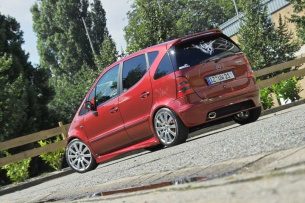 Tja, man sollte sich eben allzeit eine gewisse Flexibilität bewahren und offen für Neues bleiben! Denn nichts währt ewig. Auch nicht der schönste Styling-Trend. Schon beim ersten Foto-Shooting war ja klar, dass am Mercedes weitergearbeitet würde, blickt Daniel zurück. Und sein W168 führt eindrucksvoll vor Augen, dass der begeisterte Hobby-Schrauber Wort gehalten hat.