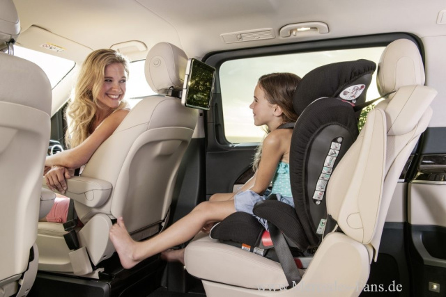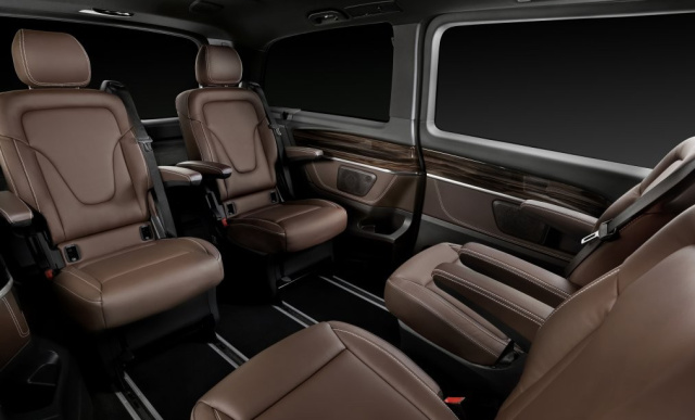 Die Bestuhlung im Fond erlaubt zahllose Konfigurationen für jeden Bedarf. Serienmäßig ist die Großraumlimousine mit vier Komforteinzelsitzen mit Armlehnen in zwei Sitzreihen ausgestattet. Sie lassen sich durch verbesserte Technik und Bedienlogik intuitiv nach vorn klappen und erlauben so einen schnellen und einfachen Einstieg nach hinten. Auf Wunsch kann zwischen den Einzelsitzen in der ersten Reihe ein klappbarer Tisch montiert werden.