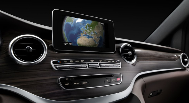 Zu den Highlights des V-Klasse Interieurs gehören unter anderem das freistehende Zentraldisplay, das Multifunktionslenkrad mit zwölf Tasten und DIRECT SELECT Wählhebel mit Lenkradschaltpaddles bei Automatikgetriebe sowie das innovative Touchpad, mit dem sich alle Telematik-Funktionen wie bei einem Smartphone über Gesten oder die Eingabe von Buchstaben und Zeichen bedienen lassen. Das Touchpad ist ab der Ausstattung mit Audio 20 CD oder mit COMAND Online erhältlich. Die neuste Generation von COMAND Online vereint alle Audio-, Telefon- und Navigationsfunktionen und bietet zudem einen Internetbrowser, das Sprachbediensystem LINGUATRONIC und die Verkehrsdatenübertragung in Echtzeit. Für das perfekte Musikerlebnis sorgt auf Wunsch das Burmester Surround-Soundsystem mit 16 Lautsprechern und einer Bassreflexbox.