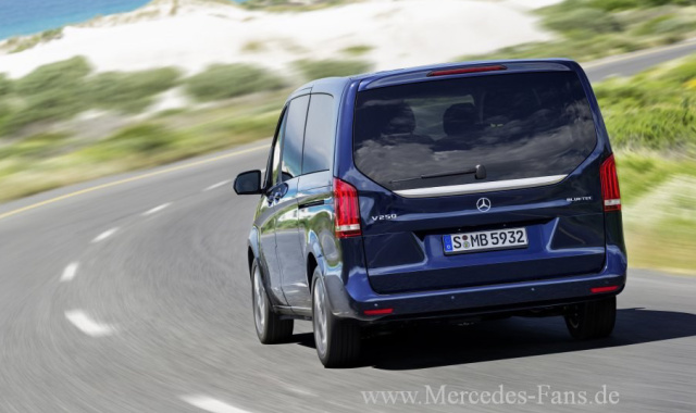 Die Top-Motorisierung V 250 BlueTEC ist mit 140 kW (190 PS) und einem kraftvollen maximalen Drehmoment von 440 Newtonmetern so durchzugsstark und agil wie der bisherige 3-Liter-V6-Turbodieselmotor. Gleichzeitig bietet das neue Spitzenmodell eine hohe Laufruhe und die Innenraumgeräusche wurden - unter anderem durch umfangreiche Dämmung - im Vergleich zum Sechszylinder-Vorgänger deutlich reduziert. Auch der Verbrauch ist wesentlich geringer: Mit 6,0 Litern Diesel pro 100 Kilometer verbraucht der Vierzylinder-Turbodiesel bei gleicher Performance 28 Prozent weniger Kraftstoff als der Sechszylinder. Dank BlueTEC erfüllt das Top-Modell außerdem als erstes
