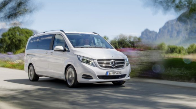 Zur Markteinführung startet die neue V-Klasse mit dem hochmodernen 2,1-Liter-Vierzylinder-Turbodiesel mit zweistufiger Aufladung, der sich bereits in zahlreichen Pkw-Baureihen von der A-Klasse bis zur S-Klasse bestens bewährt hat und für die Großraumlimousine gezielt weiterentwickelt wurde. Er ist in drei Leistungsstufen erhältlich: Der V 200 CDI entwickelt 100 kW (136 PS) und ein maximales Drehmoment von 330 Newtonmetern. Der V 220 CDI mobilisiert 120 kW (163 PS) und 380 Newtonmeter. Das sind jeweils 20 Newtonmeter mehr als im Vorgänger bei rund zwei Litern weniger Kraftstoffverbrauch. Mit einem Verbrauch von nur 5,7 Litern pro 100 Kilometer und einem CO2-Ausstoß von 149 Gramm pro Kilometer nimmt der V 220 CDI eine absolute Spitzenstellung im Segment ein.