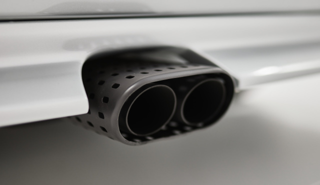 Auch für das Heck hat man sich bei der Stern Garage etwas Besonderes einfallen lassen. Die Abgase werden über ein schwarzes Evo-2-Endrohr, das in die AMG-Stoßstange eingearbeitet ist, entlassen. Mattschwarz lassen sich an diesem 500 E übrigens alle Zierelemente blicken.