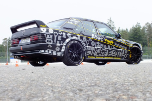 Die Motoren-Experten von Atec-Motorenbau gönnten einem Mercedes 190E 1.8 eine gehörige Kraftkur. Unter der Haube hat der Mercedes der Baureihe W201 daher mächtig zulegen können. Entsprechend seines Leistungsvermögens zeigt sich der optisch angedickte Benz im selbstbewussten Evo-Kleid. Dagegen musste der Innenraum reichlich Federn lassen, wodurch jedoch die Metamorphose zum Straßenboliden erst so richtig perfekt wird.