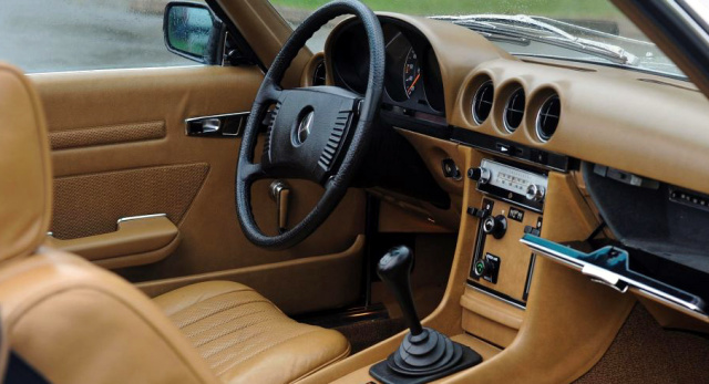 Neben der herausragenden Komfortausstattung, die der Mercedes 350SL bereits ab Werk mitbringt, verfügt der Benz über spezielle Sicherheitssysteme, die damals zum Schutz des "Titans der Titanen" (ein weiterer Ehrentitel aus jener Zeit) verbaut wurde. Außerdem bringt der Mercedes ein Becker-Radio (Mexiko) und ein zweites Becker-Kurzwellenradio, das im Handschuhfach nistet, mit.