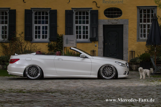 Das Ziel individueller Mercedes-Benz-Fahrspaß führt manchmal über Umwege. So war's jedenfalls bei Björn Rhein. Der Wuppertaler ist in Sachen Tuning kein Ersttäter. Des Öfteren hat er sich an Tuning-Projekten, darunter auch ein Golf 1 Cabrio und ein Audi A5. versucht, ehe er auf den Stern gekommen war. Ich habe VW und Audi immer gemocht, so Björn, aber in den Anblick des Mercedes E-Klasse-Cabrios habe ich mich sofort verliebt!