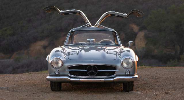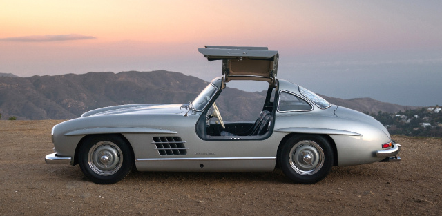 Das atemberaubende Aussehen des Flügeltürers wird nur durch seine Raumfahrttechnik, seine unglaubliche Leistung und seinen weltbesten Stammbaum übertroffen, der seinen werksgefertigten Varianten zwischen 1952 und 1956 überzeugende Siege bei vielen der wichtigsten Sportwagenrennen der Welt einbrachte, einschließlich des 24-Stunden-Rennens Le Mans, Carrera Panamericana, Mille Miglia und Lüttich-Rom-Lüttich (sowie mehrere SCCA- und Rallye-Europameisterschaften). Das 300 SL Flügeltürer Coupé ist ohne Zweifel der Sportwagen des Jahrhunderts – eine Ikone unter all den Sportwagendesigns der Nachkriegszeit, die bis heute Sammler in ihren Bann ziehen.