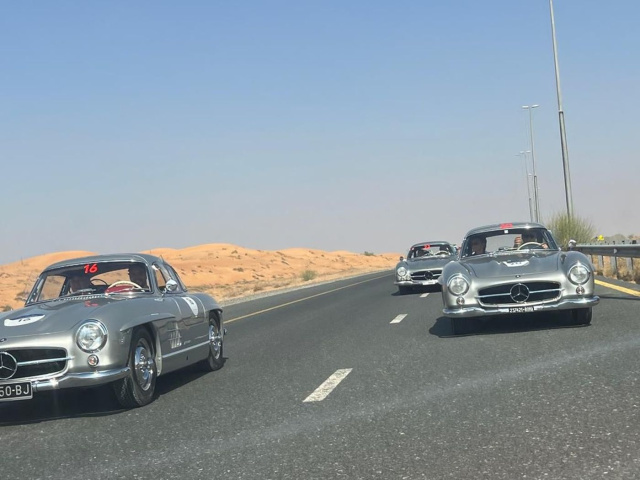 An vier Tagen durch sieben Emirate so der Plan. Es soll sich wiederholen. Der Anfang ist gemacht und er war schlichtweg spektakulär. Was nicht wirklich überraschend ist, denn mit dem Veranstalter der Mille Miglia in Italien und Octanium, der führenden Marketingagentur der United Arab Emirates (UAE) waren auch die Qualitätsstandards gesetzt. HK-Engineering war von Anfang an in die Vorbereitungen der Veranstaltung eingebunden und stellte das Service Team. Die Teilnehmer haben dem Veranstalter gedankt. Rund 100 Teams sind am 5. Dezember in Dubai an den Start gegangen, darunter allein zehn 300 SL. Zudem war die Mercedes-Fan Gemeinde durch zahlreiche 111er Cabrios und Pagoden vertreten. Und – es war fast schon erahnen – Rennfahrerlegenden wie ein Jochen Mass griffen auch hier ins Lenkrad.
