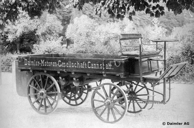 Eines hatten die frühen Nutzfahrzeuge gemein: das Aussehen wie eine Kutsche ohne Deichsel, bei der die virtuellen Pferde im Heck arbeiteten. Im Vergleich zu heutigen Lkw steckte die Technik damals noch in den KInderschuhen: Der "Lieferungswagen" von Benz & Cie. zeichnete sich durch etwa 600 Kilogramm Tragfähigkeit aus. Er war vom Personenwagen Phaeton abgeleitet. Gottlieb Daimlers erster Lastenwagen war für 1,5 Tonnen Nutzlast ausgelegt und wurde von einem 4 PS starken Phoenix-Zweizylinder angetrieben. Bis zum Sieg des Motor-Lastwagens über das Pferdefuhrwerk war der Weg damals freilich noch weit.