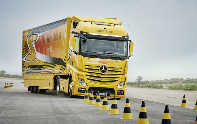 Mit dem Safety Truck präsentiert Mercedes-Benz den bis dahin sichersten Lkw der Welt. Er verfügt nicht nur über die Ende 2000 vorgestellte Telligent Abstandsregelung und den Spurassistenten sowie die Ende 2001 eingeführte Telligent Stabilitäts-Regelung, sondern zusätzlich über den bahnbrechenden Notbrems-Assistenten Active Brake Assist (ABA), einen wichtigen Meilenstein auf dem Weg zum unfallfreien Fahren.