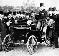 Die Daimler-Motoren-Gesellschaft gewinnt dank der nun von Daimler und Maybach energisch vorangetriebenen Verbesserungen und Neukonstruktionen schnell wieder an Boden. Sie hat in Amerika, Österreich und England (Links: F. R. Simms, Gründer des Daimler Motor Syndicate, im Jahr 1895 bei einer Vorführung des ersten in England eingeführten Daimler-Riemenwagens am Crystal Palace in London) eigene Niederlassungen. In Italien ist die sehr rührige Generalvertretung ein Katalysator für den jungen Kavallerieleutnant Giovanni Agnelli, sich mit der Herstellung von Automobilen zu befassen. Er gründet die Fabbrica Italiana Automobile di Torino, kurz Fiat. In Amerika baut Henry Ford nach Daimler-Vorbild sein erstes Gasolin-Wägelchen.