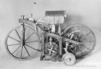 1885 haben Gottlieb Daimler und Wilhelm Maybach die Entwicklung des Viertaktmotors für den Fahrzeugantrieb weit vorangetrieben. Gegenüber dem Motor von Nikolaus August Otto ist die Motordrehzahl deutlich erhöht, Größe und Gewicht des Aggregats haben die Automobil-Pioniere hingegen stark reduzieren können. Nun gilt es, den Motor mit stehendem Zylinder, wegen seines charakteristischen Aussehens Standuhr genannt, in einem Fahrzeug zu erproben. Die Wahl fällt auf ein Zweirad mit hölzernem Rahmen und hölzernen Rädern.